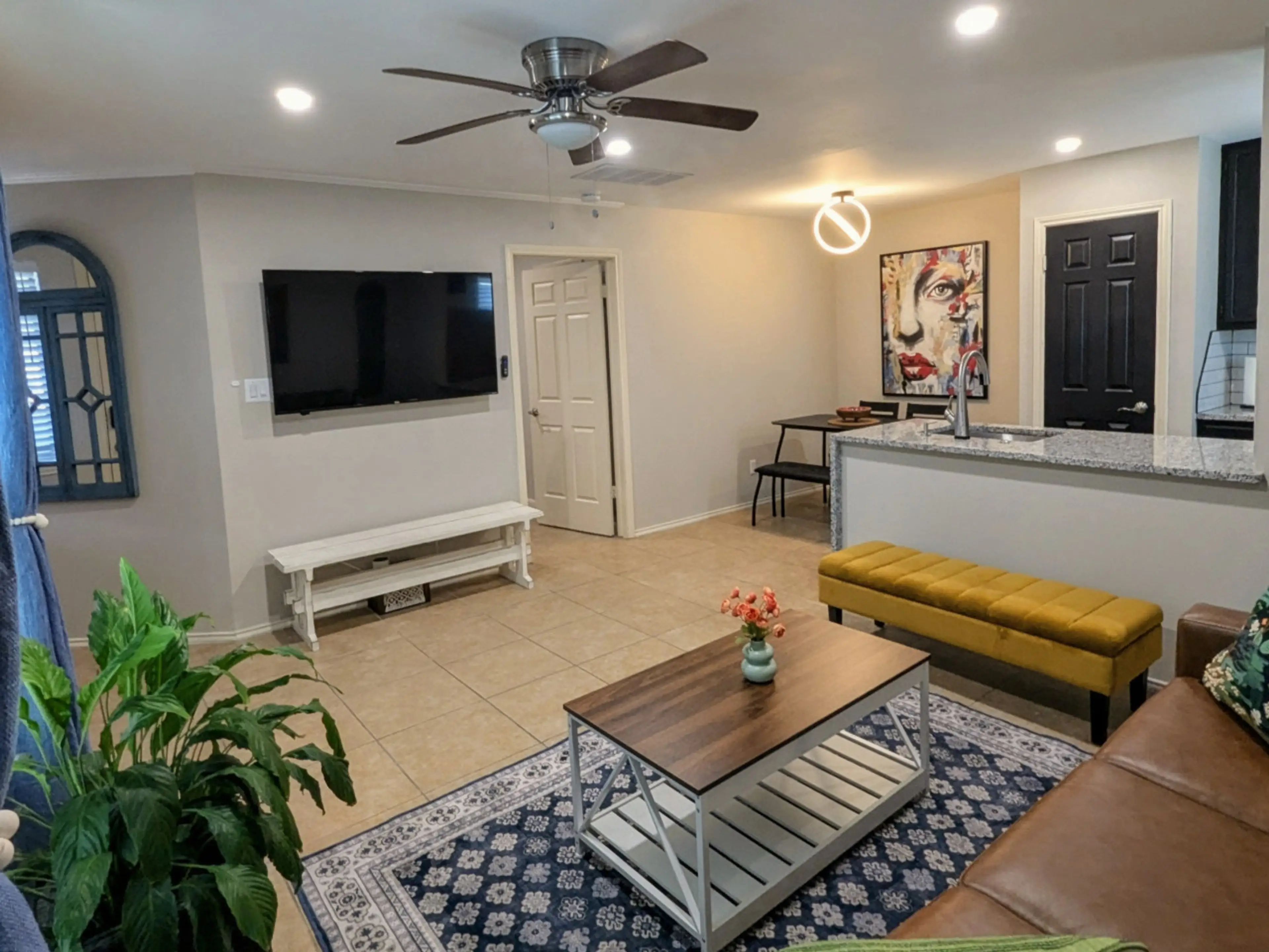 Discover Shady Chic Uptown Condo by Howdy Holiday—a stylish, funky retreat with a private shaded patio and access to a sparkling community pool. Inside, enjoy a granite waterfall kitchen, leather sofa with queen pullout, Roku Smart TVs, and in-unit washer/dryer. Reserved covered parking keeps things...